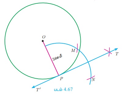 படி 4 : TT' ஆனது தேவையான தொடுகோடு ஆகும்.