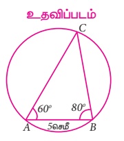 அளவுகளை உடைய ∆ABC வரைக. அதற்குச் சுற்றுவட்டம் வரைந்து சுற்றுவட்ட ஆரம் காண்க.