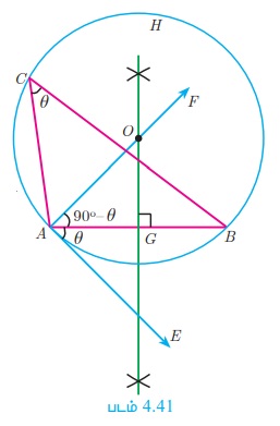 கோணம் θ-வை உள்ளடக்கிய கொடுக்கப்பட்ட கோட்டுத் துண்டின் மேல் அமைந்த வட்டப்பகுதியை வரைதல்