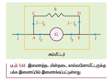 (Shuntresistance)S என்று பெயர். கால்வனோமீட்டரின் அளவுகோல் இப்போது ஆம்பியரில் குறிக்கப்பட்டு,