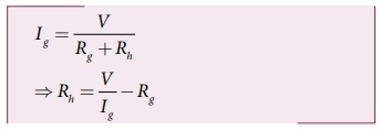 வகையில் கால்வனோமீட்டர் வழியே பாயும் மின்னோட்டத்தைச் Ig சரி செய்ய வேண்டும்.