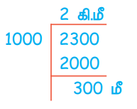 1. கிலோ மீட்டரை மீட்டாராக மாற்றுவதற்கு கொடுக்கப்பட்ட கிலோ மீட்டரை 1000 ஆல் பெருக்க வேண்டும்.