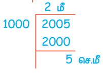 2. கொடுக்கப்பட்ட மில்லி மீட்டரை மீட்டராக மாற்ற மில்லி மீட்டரை 1000 ஆல் வகுக்க வேண்டும்.