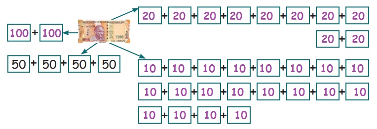 ஒரு காகிதத்தை எடுத்துக்கொள். அதில் மாதிரி நோட்டுகளை வெட்டவும். அதனை மொத்தம் ₹ 200 பெறுமாறு பெட்டிகளில் ஒட்டவும். ஒன்று தங்களுக்காக செய்யப்பட்டுள்ளது.