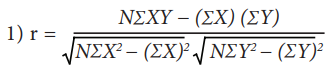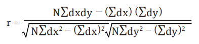 கார்ல் பியர்ஸனின் உடன்தொடர்புக் கெழு '' என குறிப்பிடப்படுகிறது. இக்கெழு இரண்டு மாறிகளுக்கு இடையேயான உறவின் அளவினையும், உறவின் திசையையும் குறிப்பிடுகிறது. இதைக் கணக்கிடுவதற்கான சூத்திரங்கள்: