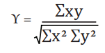 * படி-3 x விலக்கங்களின் வர்க்கத்தைக் (x2) கணக்கிட்டு கூட்டவும் (∑x2). இதுபோல் y விலக்கங்களின் வர்க்கத்தைக் (y2) கணக்கிட்டு கூட்டவும் (∑y2)