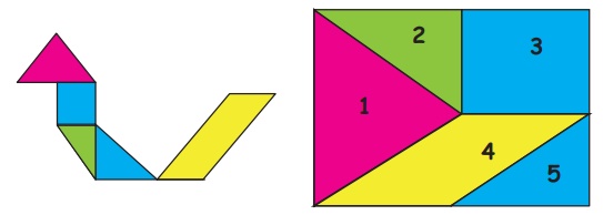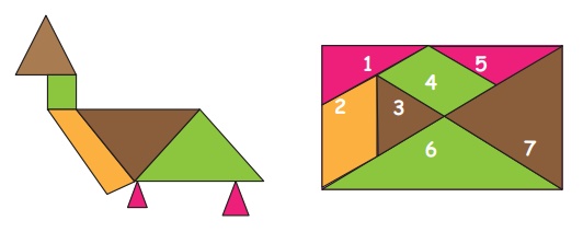 1. ஏழு துண்டுகளுடைய புதிர்வெட்டு துண்டுகளை இணைத்து கீழே உள்ள வடிவத்தை உருவாக்குக.