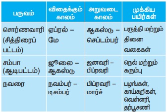 10th Social Science : Geography : Chapter 8 : Human Geography of Tamil Nadu : Cropping Seasons in Tamil Nadu Human Geography of Tamil Nadu in Tamil : 10th Standard