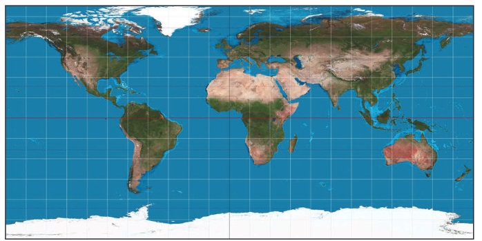 • அட்ச ரேகைகள் நேர் கோடுகளாக, சமதூர இடைவெளி கொண்டு, தீர்க்கரேகைகளுக்கு செங்குத்தாகவும் மற்றும் அவை புவியிடைக் கோட்டின் நீளத்திற்கு சமமாகவும் இருக்கும்.