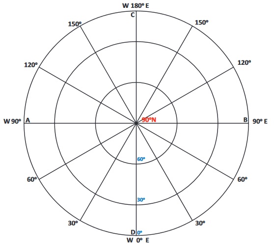 2. அட்ச, தீர்க்க ரேகைகள் ஒன்றையொன்று செங்கோணத்தில் வெட்டிக் கொள்கின்றன.