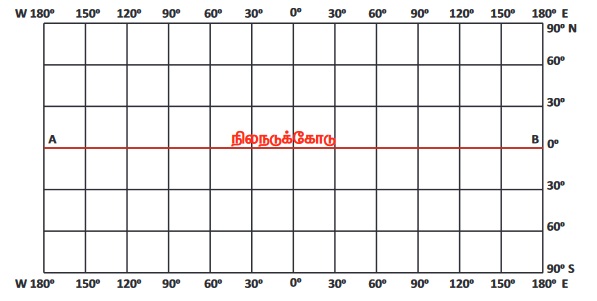 • இப்புள்ளிகளின் வழியாக, புவியிடைக் கோட்டிற்கு இணையாக கோடுகள் வரைய வேண்டும். படத்தில் உள்ளவாறு கோட்டுச்சட்டத்தினை பூர்த்தி செய்ய வேண்டும்.