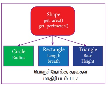 Circle, Rectangle மற்றும் Triangle ஆகியவை இந்த மாதிரியில் உள்ள பொருள்களாகும்.