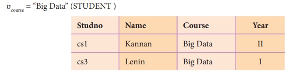 (iii) நிபந்தனைகளை திருப்திபடுத்தாத tuples களை Select வடிகட்டுகிறது.