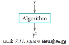 கொடுக்கப்பட்ட முக்கோணம், வலது கோண முக்கோணமா? என சோதிக்க, மேற்காண் செயற்கூற்றை, மூன்று முறை பயன்படுத்த வேண்டும். square() செயற்கூறு ஒரு "கருப்பு பெட்டி" ஆகும். இந்த Square ( ) என்ற செயற்கூறு எவ்வாறு கணக்கிடுகிறது என்பதை பற்றி, இதனை பயன்படுத்துபவர் தெரிந்திருக்க வேண்டியதில்லை. இந்த செயற்கூறின் விவரக்குறிப்பை மட்டும் தெரிந்துகொண்டால் போதுமானதாகும்