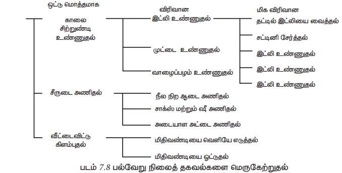 படம் 7.8ல் "பள்ளிக்கு தயாராகுதல்" என்ற செயல் எவ்வாறு மெருகேற்றப்படுகிறது என்பதை காணலாம்.