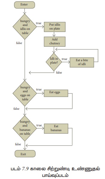 படம் 7.9ல் "காலை சிற்றுண்டி உண்ணுதல்” என்ற செயல் பாய்வுப்படமாக தரப்பட்டுள்ளது.
