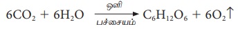 6CO2 + 6H2O ஒளி → பச்சையம் C6H12O6 + 6O2↑