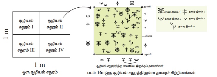 சோதனை எண் 16: சூழியல் சதுரம் (குவாட்ரட்) முறையில் உயிரினத்தொகையத்தின்