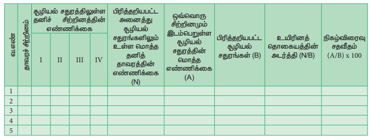 இனங்களை அ எனக் கணக்கிட்டு விவரங்களை அட்டவணையில் பதிவு செய்தல் வேண்டும்.