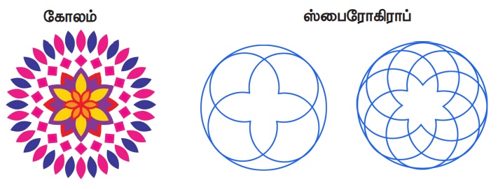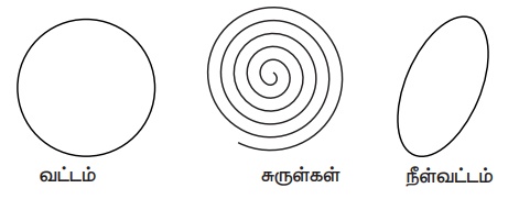 மாணவர்களே வட்டங்கள், சுருள்கள் மற்றும் நீள் வட்டங்கள் போன்ற வடிவங்களைப் பயன்படுத்தி தங்களுக்கு பிடித்த அமைப்புகளை தயார் செய்து. அதனை உங்கள் நண்பர்களுடன் கலந்துரையாடவும்.