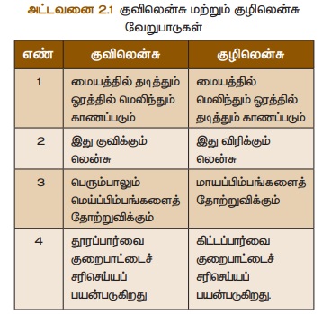 மற்றும் குழிலென்சு வேறுபாடுகள்