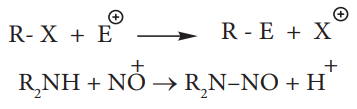 ஒரு பொதுவான அலிபாட்டிக் எலக்ட்ரான் கவர் பொருள் பதிலீட்டு வினையை பின்வருமாறு குறிப்பிடலாம்.