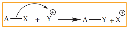 இங்குY- என்பது உள்வரும் கருக்கவர் பொருளைக் குறிப்பிடுகிறது மேலும் X- என்பது வெளியேறும் தொகுதியினைக் குறிப்பிடுகின்றது.