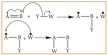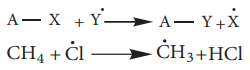இங்கு Y• என்பது தனியறுப்பு வினைத் துவக்கி எடுத்துக்காட்டு ஆல்கேன்களின் ஹேலஜைனேற்ற வினை. இவ்வினையின் விரிவான வினைவழிமுறை பாடம் 13 இல் விளக்கப்பட்டுள்ளது.