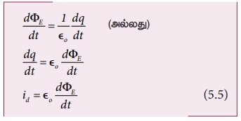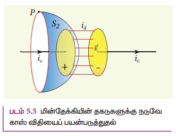 இடப்பெயர்ச்சி மின்னோட்டம் (displacement current) என்ற ழைக்கப்படும் (படம் 5.5)