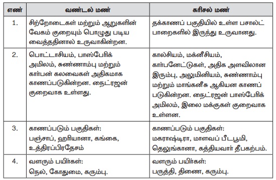 4. வண்டல் மண் மற்றும் கரிசல் மண்.