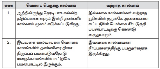 1. இவ்வகை கால்வாய்கள் வற்றாத நதிகளின் குறுக்கே அணைகளை