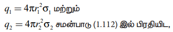 கோளம் A ன் மின்னூட்டப் பரப்படர்த்தி σ1எனவும்