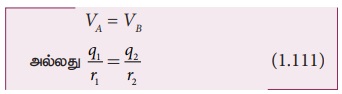 இரு கோளங்களின் மின்னழுத்தமும் சமம். ஆகவே,