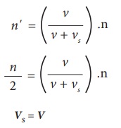 ஒலி மூலத்தின் அதிர்வெண் 'n' எனவும், கேட்குநரால் உணரப்படும் ஒலியின் அதிர்வெண் n' எனவும்