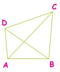 2. நாற்கரத்திற்கு நான்கு பக்கங்கள் (AB, BC, CD, DA) நான்கு முனைகள் (A,B,C,D) மற்றும் இரண்டு மூலைவிட்டங்கள் (AC, BD) உள்ளன.