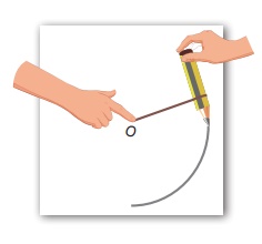 2. நூலின் ஒரு முனையை O என்ற புள்ளியில் வைத்து அழுத்திப் பிடித்துக்கொள்ள வேண்டும். மற்றொரு முனையில் பென்சிலைக் கட்டிக் கொள்ள வேண்டும்.