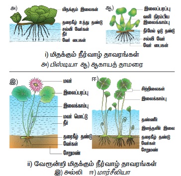 ii. வேரூன்றி மிதக்கும் நீர்வாழ் தாவரங்கள்