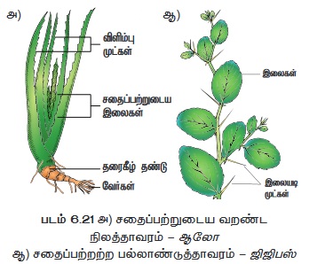 • தாவர உடலத்தின் தரைமேல் பகுதிகள் தடித்த
