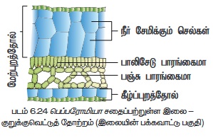 • இலையிடைத் திசுவானது பாலிசேடு மற்றும் பஞ்சு திசுவாக நன்கு வேறுபாடு அடைந்துள்ளது.