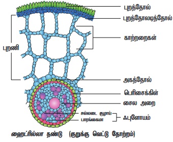 • ஸ்கிலிரங்கைமாவினாலான புறத்தோலடித்தோல் (Hypodermis) நன்கு வளர்ச்சி அடைந்துள்ளது.