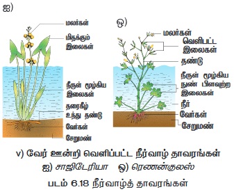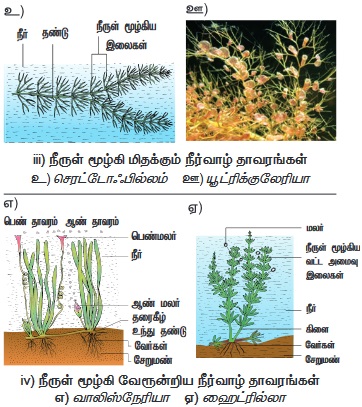 iv. நீருள் மூழ்கி வேரூன்றிய நீர்வாழ் தாவரங்கள்