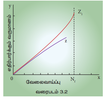 வரைபடம் வேலைவாய்ப்புக்கும், எதிர்பார்க்கும் வருமானத்திற்கும் உள்ள தொடர்பை விளக்குகிறது. பூஜ்ஜியத்திலிருந்து ஆரம்பிக்கப்பட்ட Z நேர்கோடு என்பது பணக்கூலி மாறாமல் இருக்கும் போது உள்ள நிலையையும் மற்றொன்று (Z1) வேலைவாய்ப்பைப் பொறுத்து பணக்கூலி மாறும்போது உள்ள நிலையையும் விளக்குகின்றன. Z கோடு நேர்கோடாகவும், Z1 கோடு குறிப்பிட்ட நிலைக்கு பிறகு வளைகோடாகவும் இருக்கிறது ONf அளவில் பொருளாதாரம் முழுவேலை நிலையை அடைகிறது. அதற்குப் பின்பு உழைப்பினை அதிகப்படுத்தி உற்பத்தியை அதிகப்படுத்த இயலாது. எனவே, Nf க்குப் பின்னர், தொகு அளிப்புக்கோடு செங்குத்தாக, நெகிழ்வற்றதாக உள்ளது.
