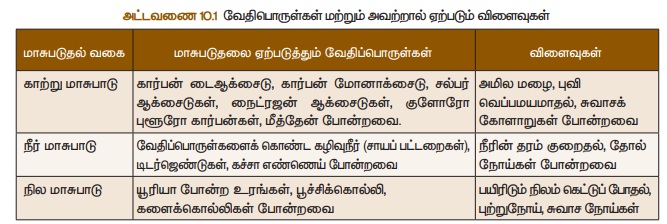 செய்கின்றன. வேதிப்பொருள்கள் மற்றும் அவற்றால் ஏற்படும் விளைவுகள் கீழே உள்ள அட்டவணையில்