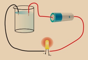 பயன்படுத்தி ஒரு எளிய மின்சுற்றை அமைக்கவும். ஒரு முகவையில் சிறிதளவு நீரை எடுத்துக்
