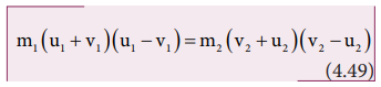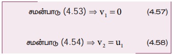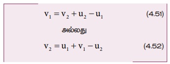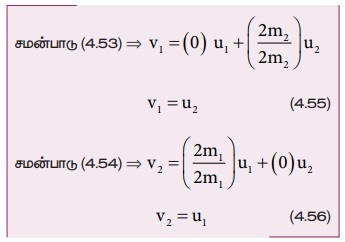 m1 = m2 மற்றும் (u2 = 0) என்ற மதிப்புகளை சமன்பாடுகள் (4.53) மற்றும் (4.54) இல் பிரதியிட