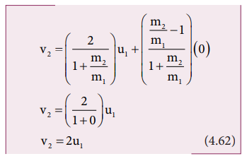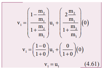 நேர்வு 4: இரண்டாவது பொருளானது முதல் பொருளைவிட நிறை குறைவாக உள்ளபோது, பிறகு விகிதம் m2/m1 ≈ 0 மற்றும் இலக்கு ஓய்வு நிலையில் உள்ளபோது (u2 = 0) சமன்பாடு (4.53) இன் தொகுதி மற்றும் பகுதியை m1 -ஆல் வகுக்க
