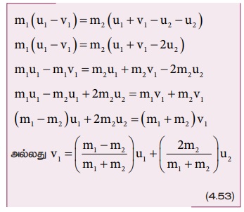 சமன்பாடுகள் (4.53) மற்றும் (4.54) இல் இருந்து இரு பொருள்களின் இறுதி திசைவேகங்களைக் கணக்கிடலாம்.