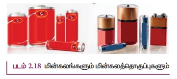 மின்கலத்தொகுப்பு (Battery) என்பது பல மின்கலங்கள் (Cells) இணைக்கப்பட்ட அமைப்பு ஆகும். ஒரு மின்கலம் அல்லது மின்கலத்தொகுப்பை இணைக்கும் போது,எலக்ட்ரான்கள் எதிர்மின்முனையிலிருந்து நேர்மின் முனைக்கு மின்சுற்று வழியே பாயும். வேதி வினைகளின் மூலம், மின்கலத்தொகுப்பு அல்லது மின்கலம் மின்முனைகளுக்கிடையே மின்னழுத்த வேறுபாட்டை உருவாக்கும். இந்த மின்னழுத்த வேறுபாடே எலக்ட்ரான்களை மின் சுற்றில் நகர்த்த தேவைப்படும் ஆற்றலை அளிக்கும். படம் 2.18 ல் வணிகரீதியாக கடைகளில் கிடைக்கும்மின்கலங்கள் மற்றும் மின்கலத்தொகுப்புகளை காட்டுகிறது.