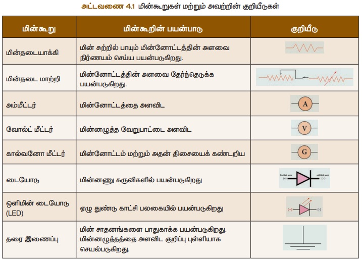 அவற்றின் குறியீடுகளும் அட்டவணை 4.1ல் கொடுக்கப்பட்டுள்ளது.