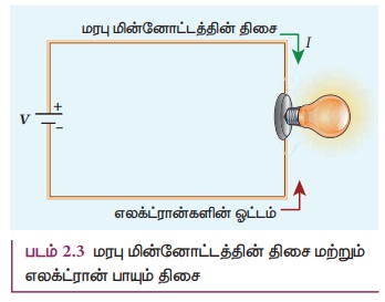 மரபு மின்னோட்டத்தின் திசையும் எதிர் எதிர்த்திசையில் படம் 2.3 இல்உள்ளவாறு அமைகின்றன.